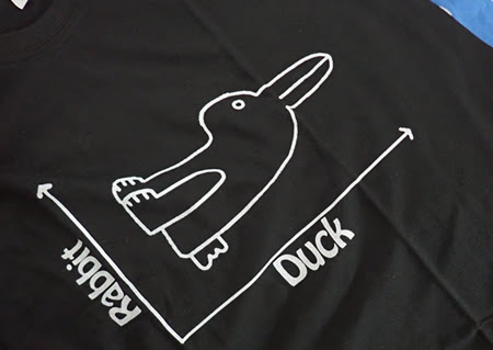 Tilt the shirt 90 degrees to the left, and you can see a rabbit. Vice versa, you can see a duck. I love this kind of picture, as do my puzzle friends.